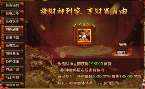 【活动内容】:活动期间,接财神到家,享受财富自由!